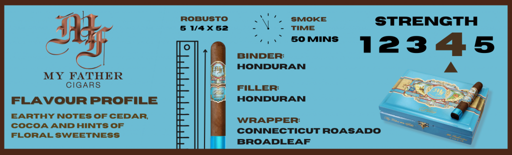 My Father Blue is not only the first cigar produced by My Father to feature tobacco from Honduras, but it also marks the Garcias’ successful expansion into Honduras as this cigar is produced at their new state of the art 78,000 square foot facility. This makes them one of the few companies crafting handmade cigars in three different countries.